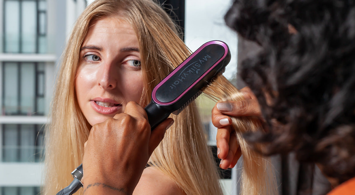 Straightens & dramatically brightens the shine of your hair without sacrifice or burns.
